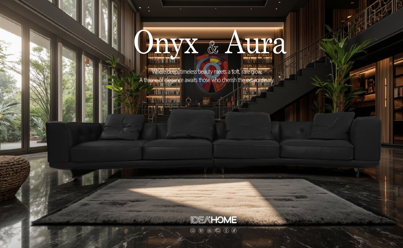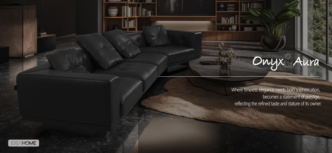 Elegance: A true throne of refinement, the Onyx & Aura Sofa transforms any space into a sanctuary of bold beauty and understated sophistication.