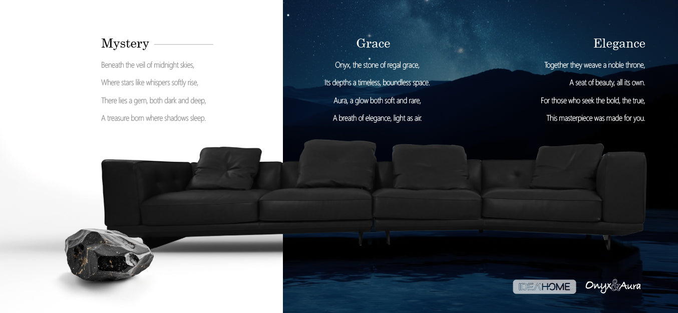 Inspired by the enigmatic beauty of midnight skies and the regal allure of onyx stone, this masterpiece effortlessly combines style and comfort.
